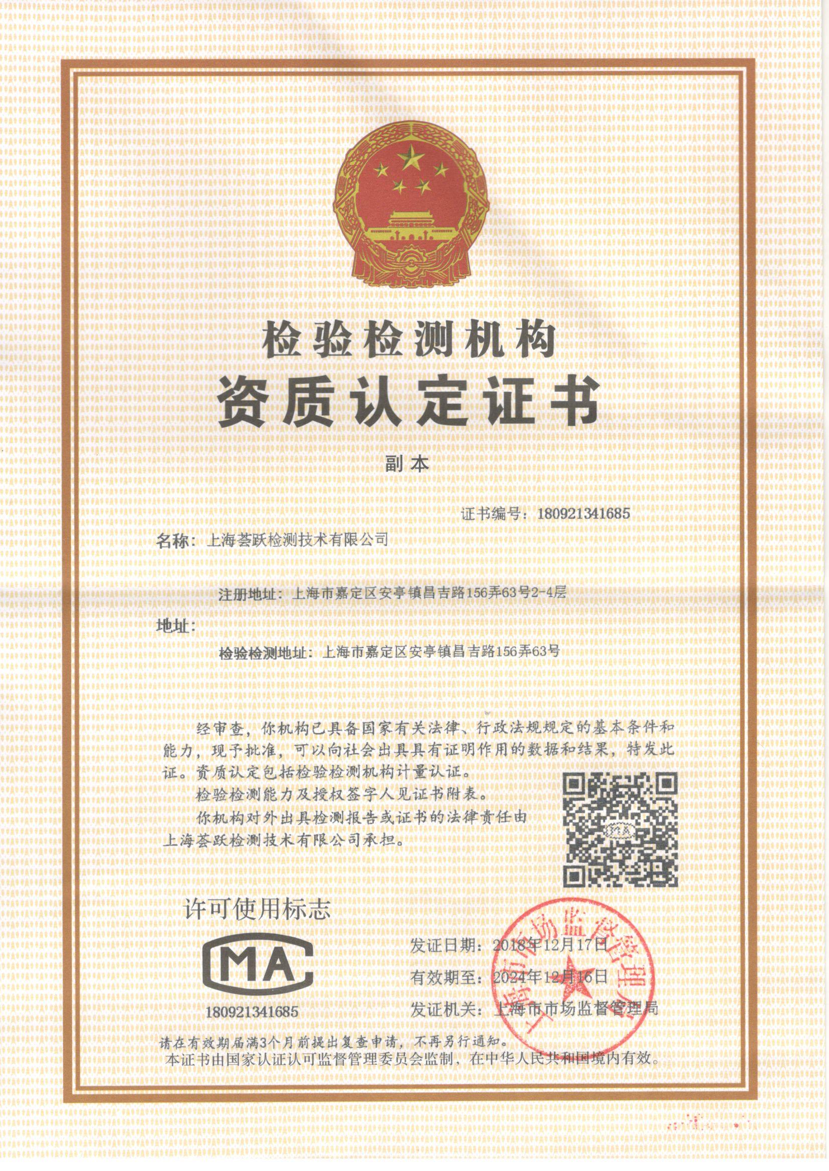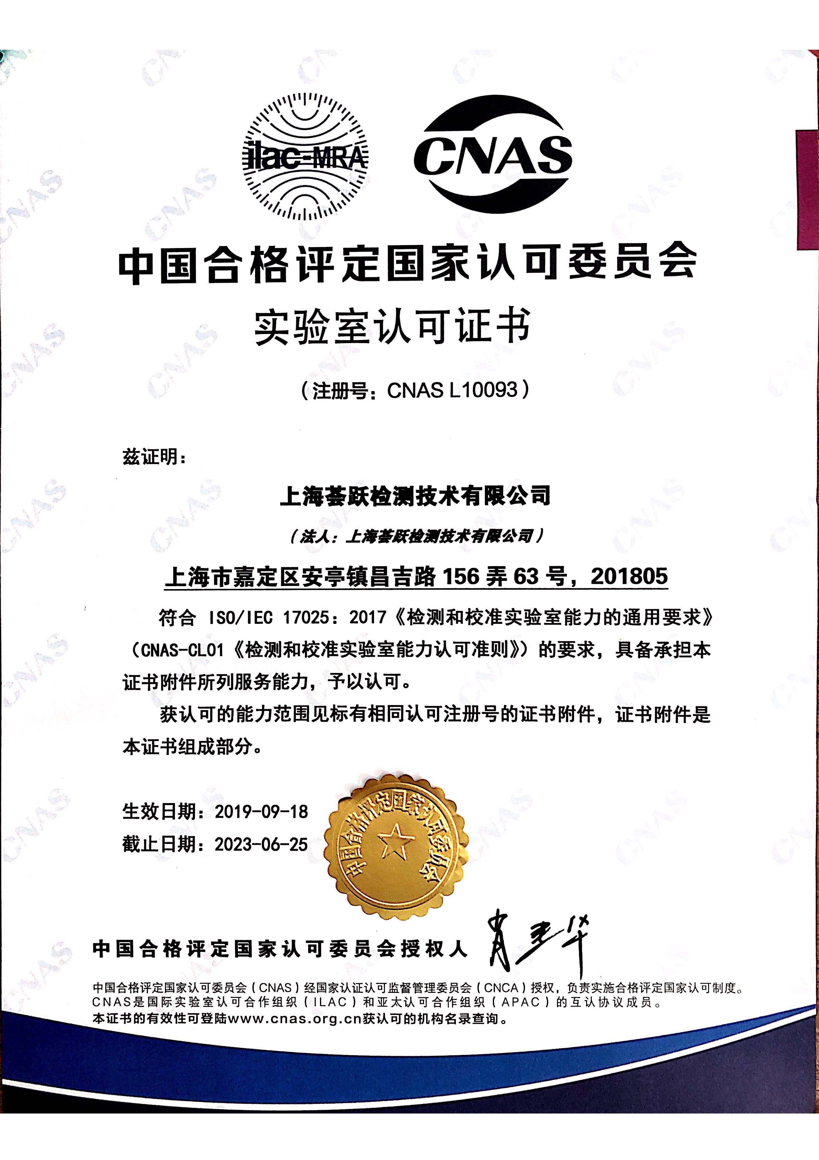 CNAS certificate