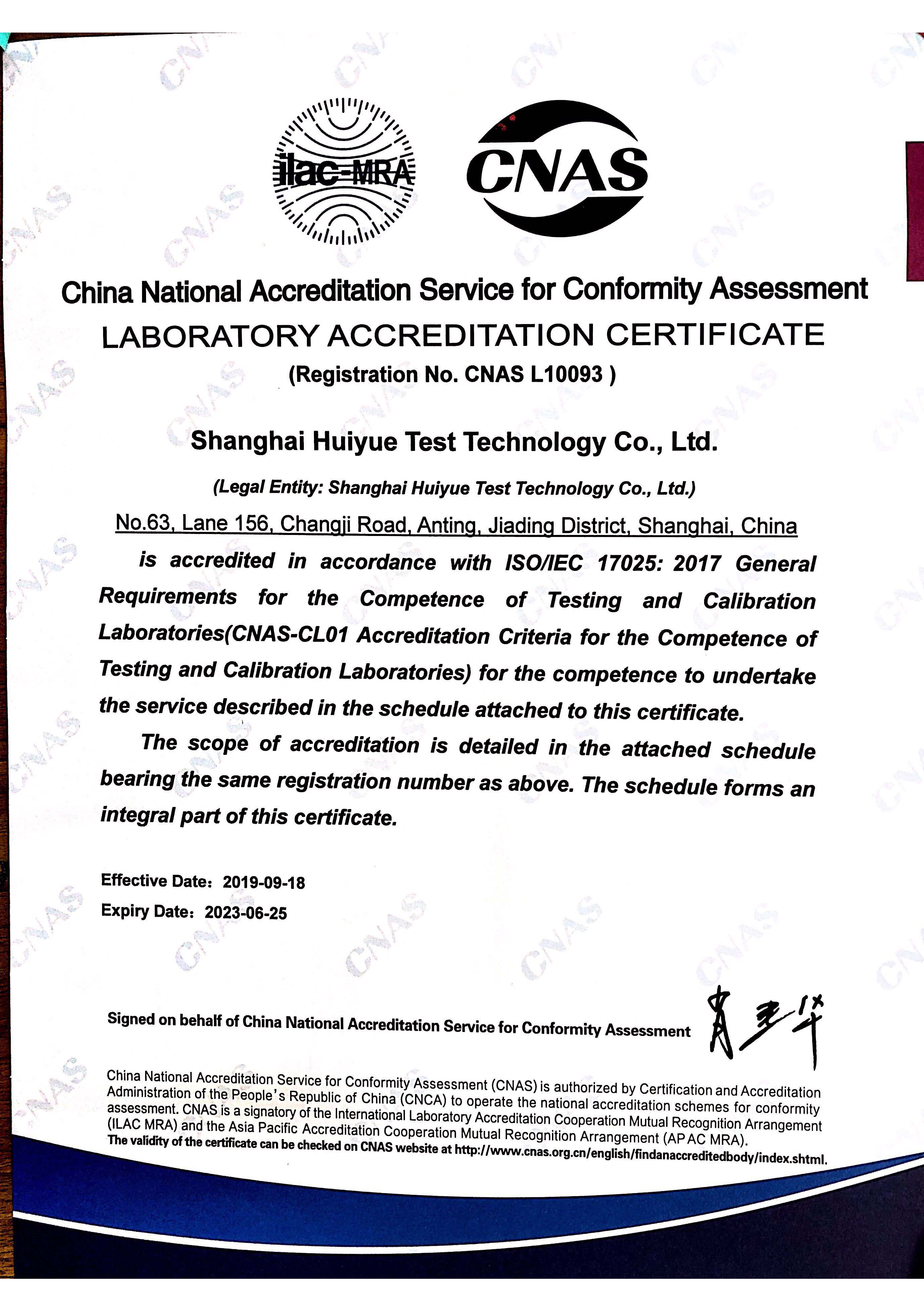 CNAS certificate (English version)