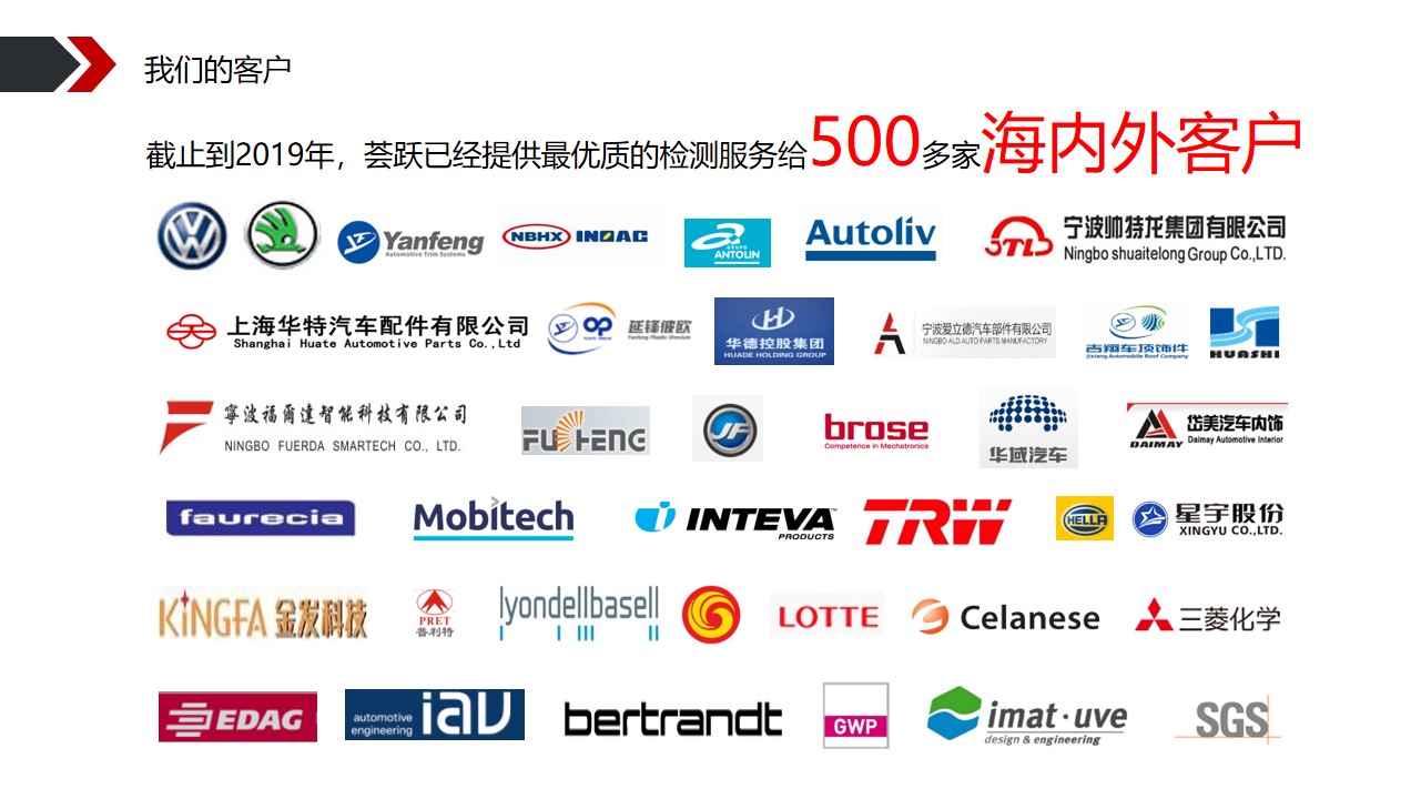 荟跃检测技术有限公司是一家独立的第三方检测机构,总部位于上海安亭,在上海设有3个汽车测试中心,并在安徽、长春设有分支机构。公司专注于汽车内、外饰零件的功能及材料检测。公司不仅能完成行业基础的检测项目,更具有国内领先的整车气候试验、零部件功能试验、内饰件散发测试(立方仓法)等资质。作为独立、公正、专业的检测机构,公司在保证其检测服务客观性的同时,更能够为客户提供不合格零件与材料的改进建议,真正助力企业发展!