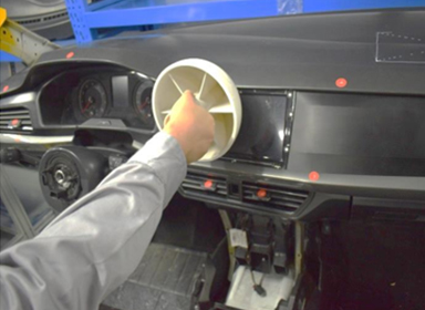 根据客户需要,仪表板总成的开发性试验包括仪表板本体、手套箱、杂物盒、出风口、电子显示屏、转向柱等部分: